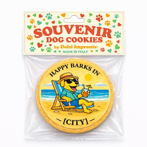 FR Exemple ville – graphisme personnalisable Souvenir de votre ville avec une illustration dédiée à l’univers du Pet. Biscuit artisanal format rond, conçu pour les touristes qui voyagent avec leur chien ou souhaitent rapporter chez eux un souvenir original de la destination. Réalisé en Italie et conditionné individuellement, il associe : • Graphisme dédié...