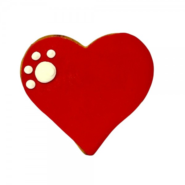 Dolci Impronte | Lot de 3 pièces - Cœur rouge et petite patte 44g – Biscuit artisanal en forme de cœur, décoré à la main (env. 8x6 cm), poids net 44 g ; aliment complémentaire pour chiens adultes ; composition : farine de blé tendre, fructose, œufs pasteurisés, margarine végétale, saccharose, sirop de glucose, miel, huiles et graisses végétales, amidon de maïs, mono- et diglycérides d’acides gras, glycérol ; additifs technologiques : conservateurs (acide sorbique 1a200, sorbate de potassium 1k202, acide citrique 1a330), émulsifiants, antioxydants ; additif organoleptique : arôme ; analyse : protéines 8%, fibres 1,9%, matières grasses 11%, cendres 0,56%, humidité 14% ; utilisation : servir jusqu’à 10% de la ration journalière avec eau fraîche disponible ; conserver au frais et au sec ; produit en Italie pour Fifty S.r.l., Venise, établissement IT900011VE.