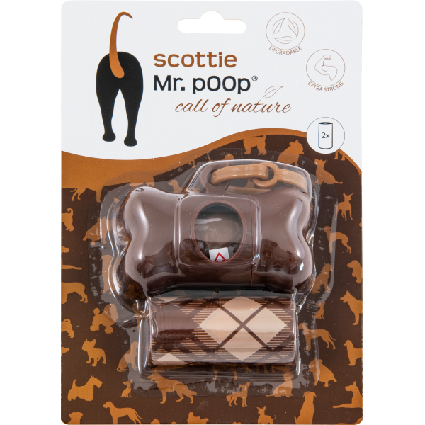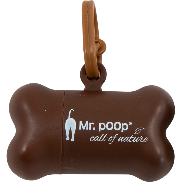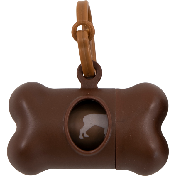 Pratico porta sacchettini igienici, dalla forma di osso. Ideale per cani di taglia medio/grande, include 2 rotoli di sacchetti .