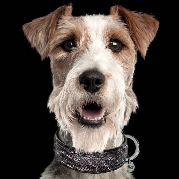 Milk&Pepper - Jaguar - Collare Cuoio Stampato - Nero -Taglie 35-45cm