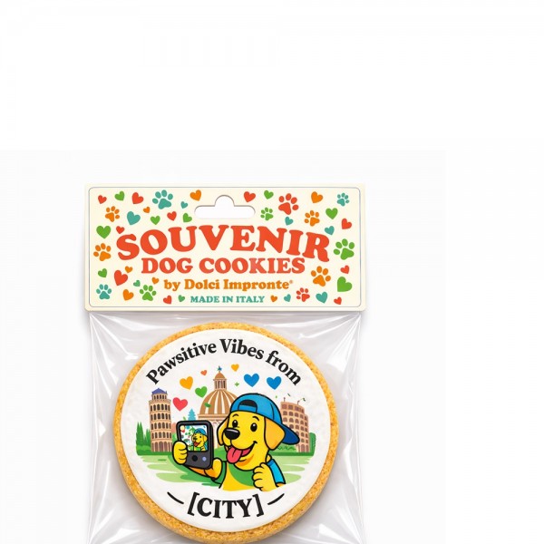 Souvenir City Edition by Dolci Impronte GREETINGS FROM [CITY] Esempio città – grafica personalizzabile Un souvenir per ricordare la tua città con un’illustrazione dedicata al mondo pet. Biscotto artigianale formato osso, pensato per i turisti che viaggiano con il proprio cane o desiderano portare a casa un ricordo originale della destinazione. Realizzato...